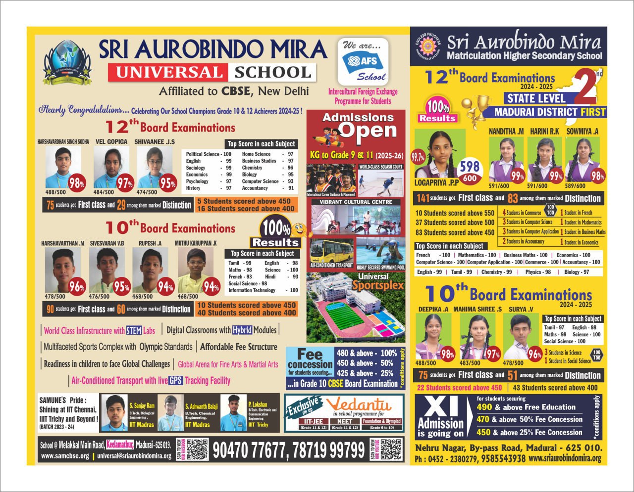 Sri Aurobindo Mira College of Education, incepted in the academic year 2007-2008, marks another milestone in the annals of the history of the Guruji Education Trust, which makes an untiring venture towards expanding its educational services. The trust has a very remarkable future to achieve. Sri Aurobindo Mira College of Education beacons you, bordering the booming national highway No.7.Located in the heart of the city with its tall and majestic buildings having a commending view of Pasumalai hills and Thiruparankunram rock temple. Established with ideal - infrastructure comprising fully air - conditioned A.V. Hall, fully air - conditioned Seminar Hall, automated and air conditioned library and advanced technical-A.V aids well-equipped lecture halls. This institution, run by Guruji Educational Trust, has made a nascent start with its full-intake of 100 trainees for the year 2007 - 2008