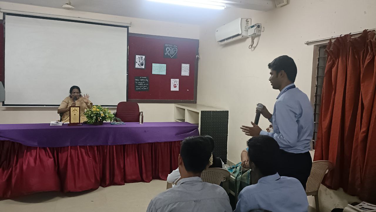 On Account of International Day for Elimination of Violence Against Women, Guest Lecturer was organized @ Samce on 25.11.2022 . Ms Jessie Jeeva Priya, an advocate,Madurai high Court was invited to talk on “Women’s access to justice”. A lot of information and help regarding various existing acts and laws to protect women against crimes were shared by the chief guest to enlighten the future generations of their rights and responsibilities. The session was very informative and educational to the crowd of faculty and students alike