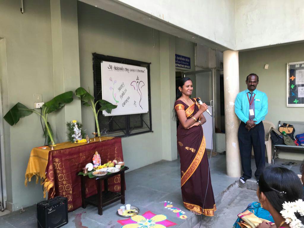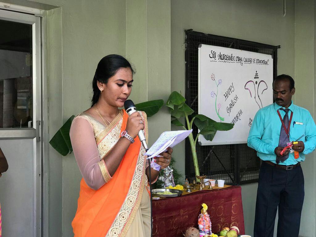 Festivals build group cohesiveness. Festivals inform, educate, bring people together, break the monotony of routine and give us a chance to reenergize our body, mind and spirit. Of all festivals Ganesh Chaturthi is the most colorful. It is celebrated with much fervor and joy. The entire student teachers devoted a lot time and sweat in the decoration and management of the event. The festival is celebrated by installing Lord Ganesha’s idol at SAMCE. After worship of Lord Ganesha, Cultural programs were conducted by our Student Teachers. The students and faculty members celebrated the festival with gaiety and grandeur..