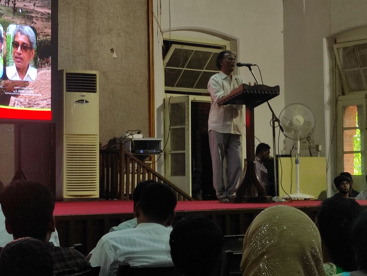The American College along with Poovulagin Nanbargal organisation conducted a conference on “Youth and Climate” on the 17th of August to create and spread awareness about environment and climate change among today’s youth. After the inaugural address by Mr. Davamani Christopher, the principal of The American College, Honourable MP Mr. Venkatesh and various other Environment enthusiasts on the stage spoke on different topics like “climate change and Governance”, “climate change impacts on bio diversity” and “climate change impacts on food and water”. Environmentalist Mr. Sundarrajan, the chief of Poovulagin Nanbargal spoke about how the youths of today have the rights to our environment and it’s their responsibility to preserve what’s left of our mother land and save the Earth from neighbouring extinction. A lot of important information about the air we respire, food we eat and the place we live were given. The one day conference was filled with overwhelming yet thought provoking facts and knowledge for which in return an oath was asked from the participants- “it’s my world and I shall save it”. Global warming is not a problem that can be solved in a day to postpone now and think about a decade later. This earth birthed us, saved us. Now it’s our turn to save the mother so that she can live longer to see the future generations. Let’s join hands and work together towards small goals to save the little things of nature around us before it’s too late which might one day become a revolution and save our land which is not our right but responsibility.
