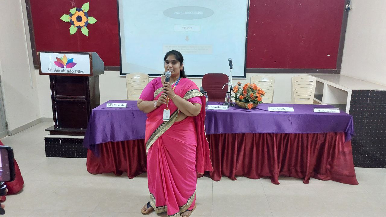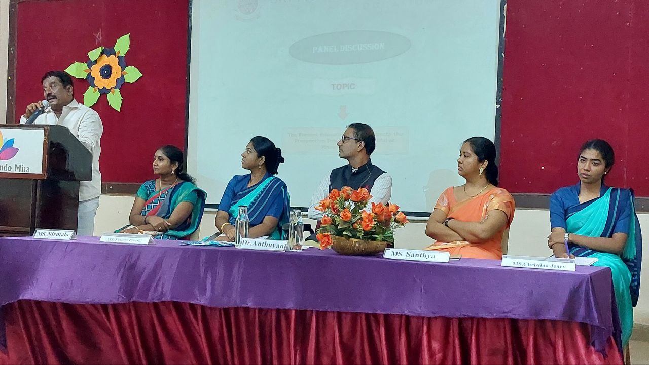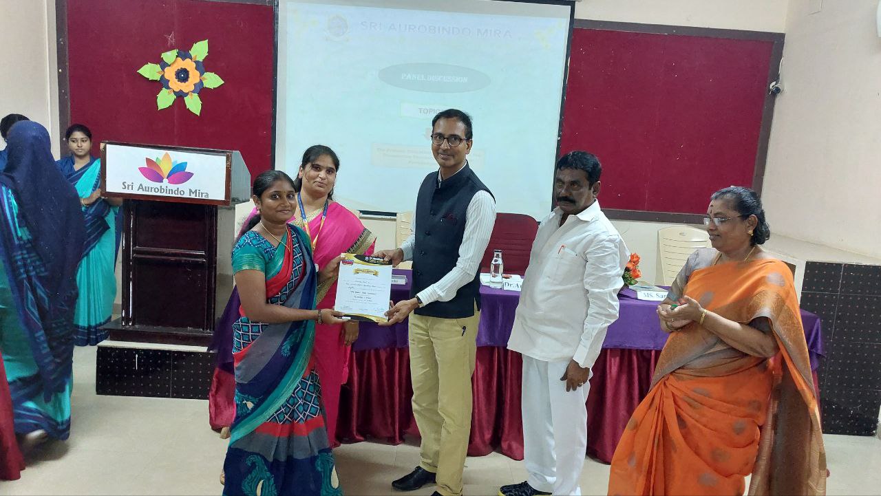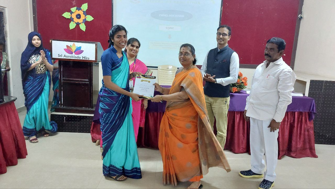 To make the future teachers of SAMCE aware of the role their opinions hold in this society and the field of education, and to make them get a peek into the lives of teachers, a panel discussion was conducted in the SAMCE campus on the topic “The education system needs the prospective teachers to be more knowledgeable or skilful”. A panel with 4 members- 2 staff members from SAM Matric, also alumni of SAMCE and 2 1st year student teachers of SAMCE batch 2022-2024 tool to the stage to state their opinions in their desired topics. Mr. Anthuvan Gabriel, principal of Aurobana Indian School served as the moderator for today’s session. Compelling and convincing arguments, if they can be called so, we’re made by ask the panelists on whatever they were speaking for. The chairman of the SAM group of Educational Institutions, Mr. Chandran graced the event with his presence and delivered the felicitation address. The way he spoke about the New Education Policy and the requirements of a teacher to be more skilful and knowledgeable to survive in the field of education was really fantastic. Knowledge and skills are different yet, they are codependent. One simply cannot exist without the scaffolding of the other. This message was clearly given to the future teachers and present teachers of SAMTRAN family as teachers play a vital role in the shaping of the society and knowledge and skills play a pivotal role in their teaching learning process.